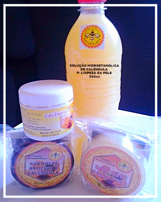01 SABONETE GLICERINADO DE CALÊNDULA 90g NATURALMIX: A Calêndula é considerada na sabedoria popular a melhor planta antialérgica existente. É muito utilizada como auxiliar no tratamento de alergias e acne, pois possui propriedades antissépticas e adstringentes. Com essência suave da própria flor de calêndula.